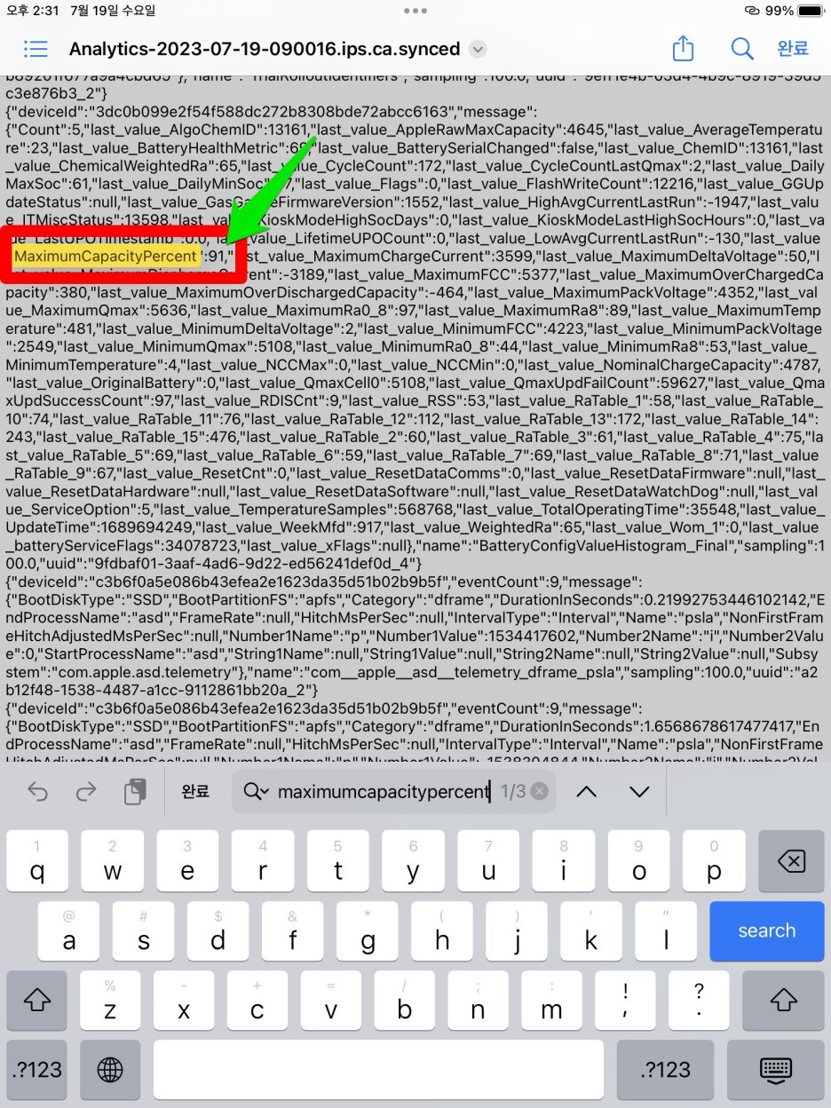 파일을 보면 복잡한 내용들로 가득 차 있습니다. 너무 많은 분석 내용들이 들어 있어서 여기서 배터리 상태에 관련된 정보를 찾기는 쉽지 않겠죠...^^