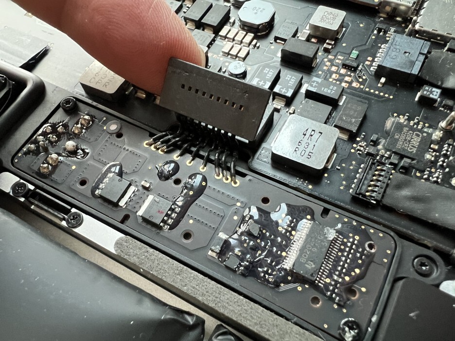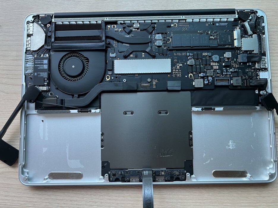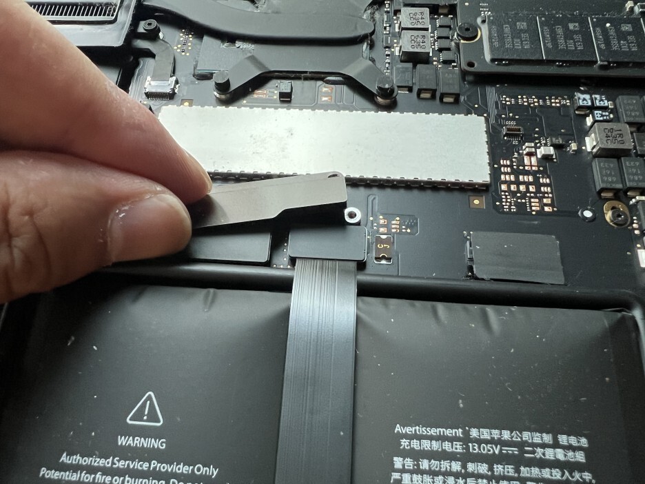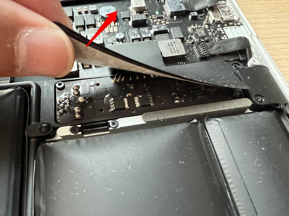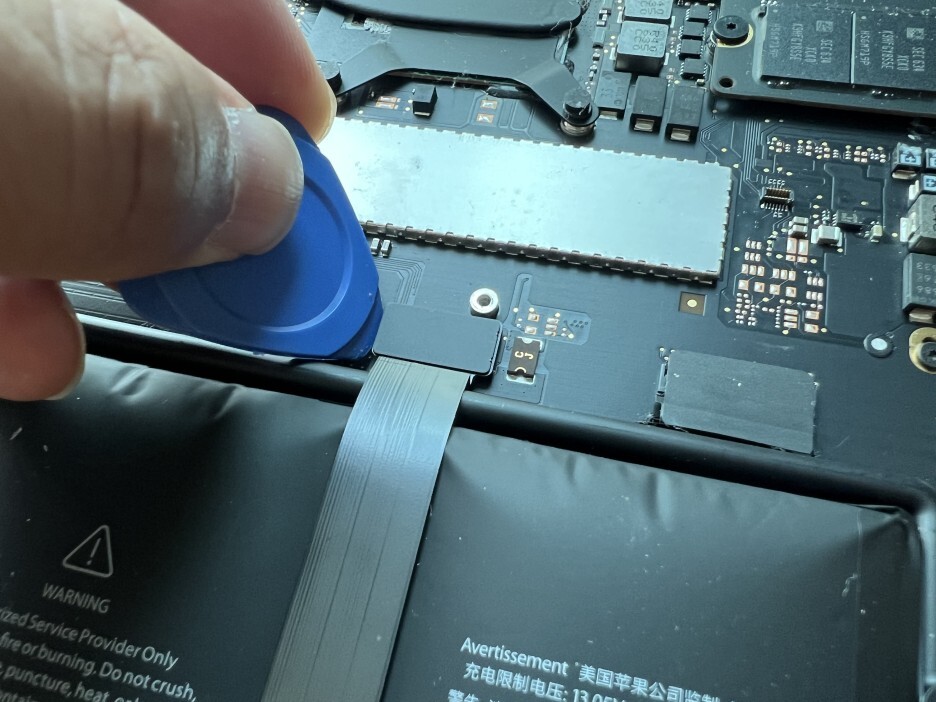 트랙패드 케이블을 보드에서 분리합니다. 마찬가지로 플라스틱 헤라 등의 도구를 사용하면 쉽게 분리할 수 있습니다.