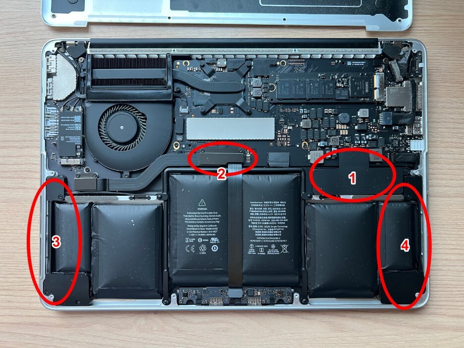 이제 배터리를 교체하기 위해서 아래 사진과 같이 4군데의 케이블을 분리해야 합니다.