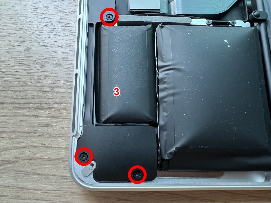 첫번째 나사를 풉니다. 배터리가 부풀어 올라서 나사를 풀자마자 벌어지는 것을 알 수 있습니다.