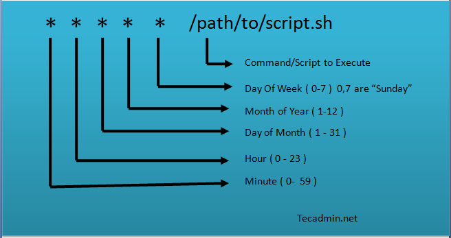 분(0-59) 시간(0-23) 일(1-31) 월(1-12) 요일(0-7)