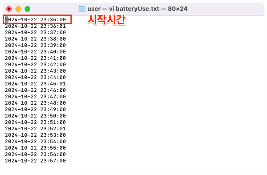 쉘 스크립트와 crontab을 사용하여 1분마다 파일에 시간을 저장하게 만들었습니다.