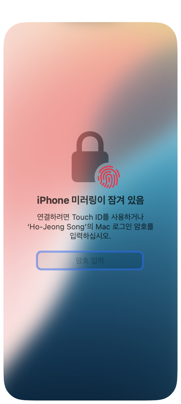 미러링 중에 아이폰을 열면 미러링이 종료 됩니다.