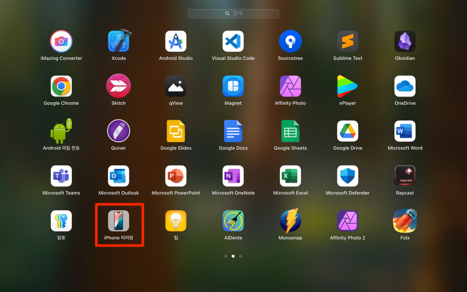 Launchpad를 열면 다음과 같은 [iPhone 미러링] 아이콘을 볼 수 있습니다.