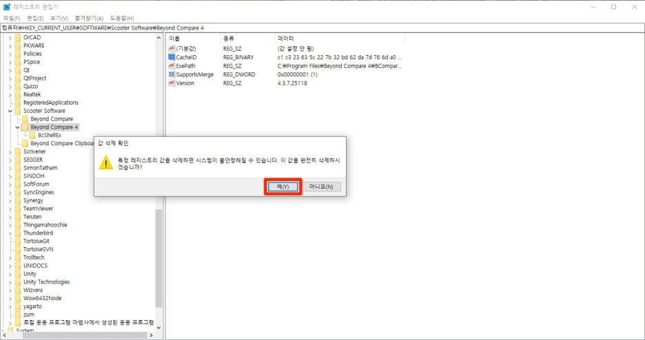 2. \HKEY_CURRENT_USER\Software\Scooter Software\Beyond Compare 4 로 이동합니다.
