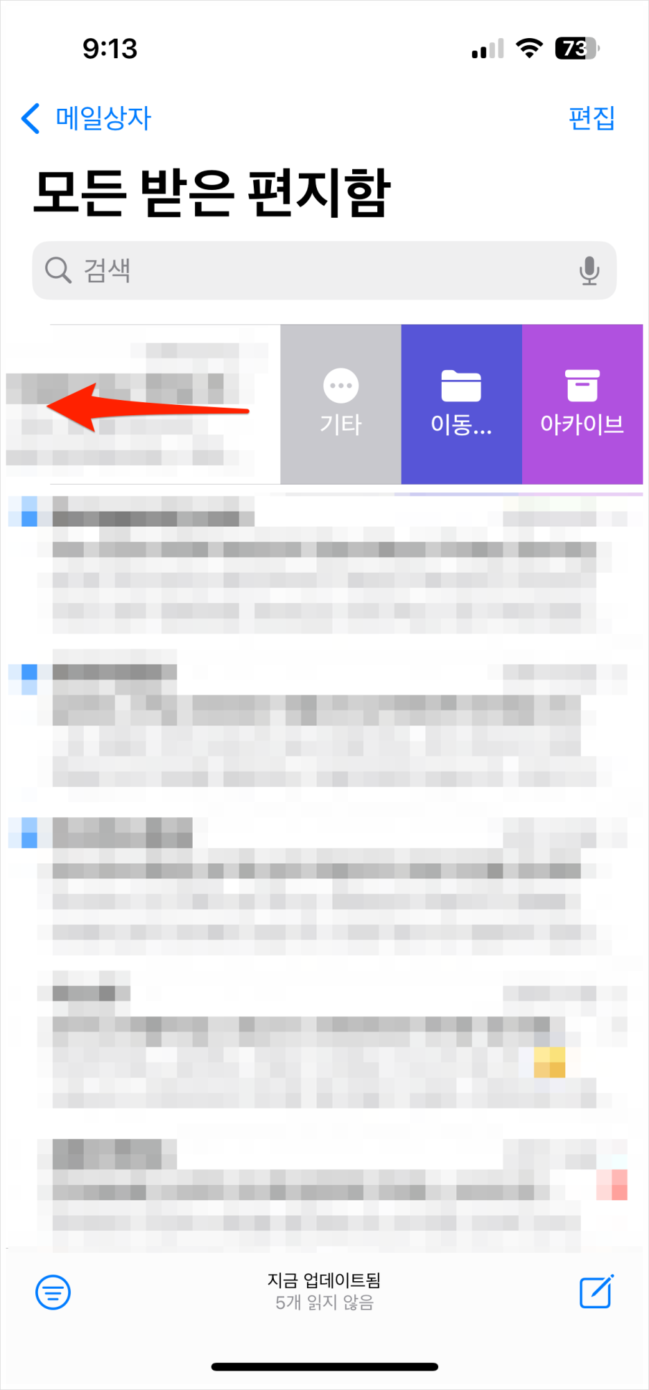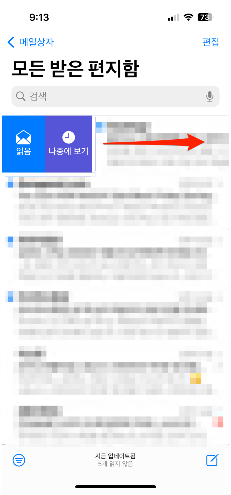 목록에서 메일을 읽지 않고 스와이프를 사용하새 읽음 표시를 하거나 삭제를 자주 이용하는데...