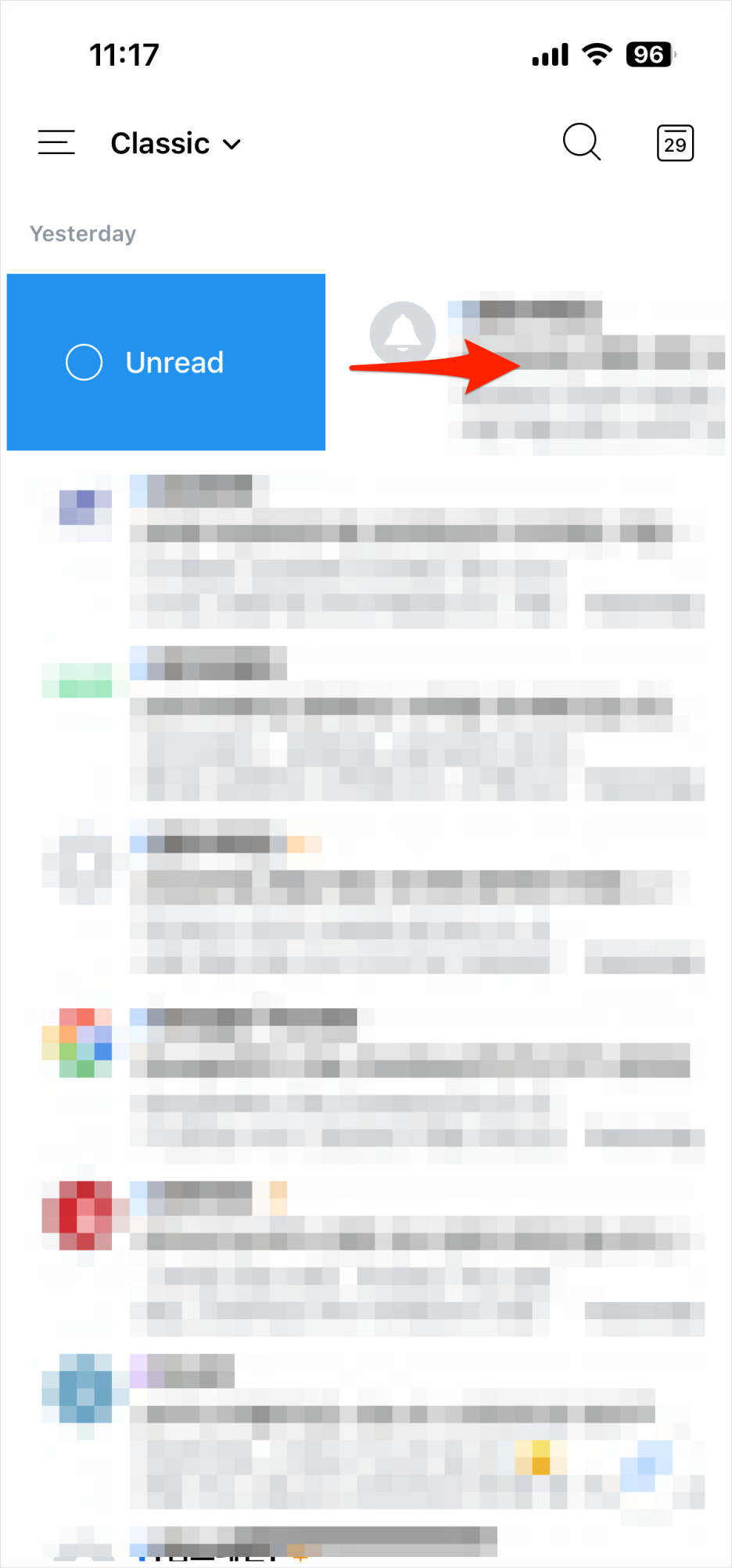 이제 오른쪽으로 짧게 스와이프하면 Read/UnRead 표시를 할 수 있고,