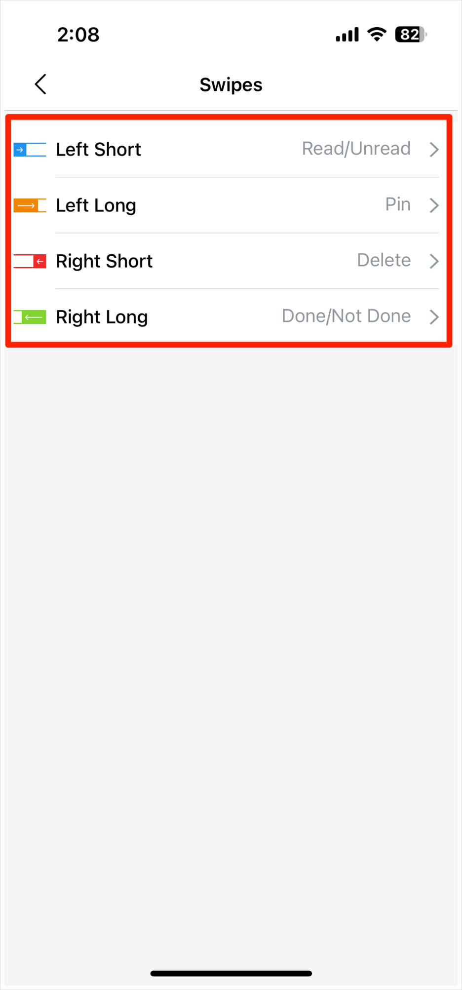 아래로 내려 [Swipes]를 선택 한 후 원하는 기능으로 설정합니다.
