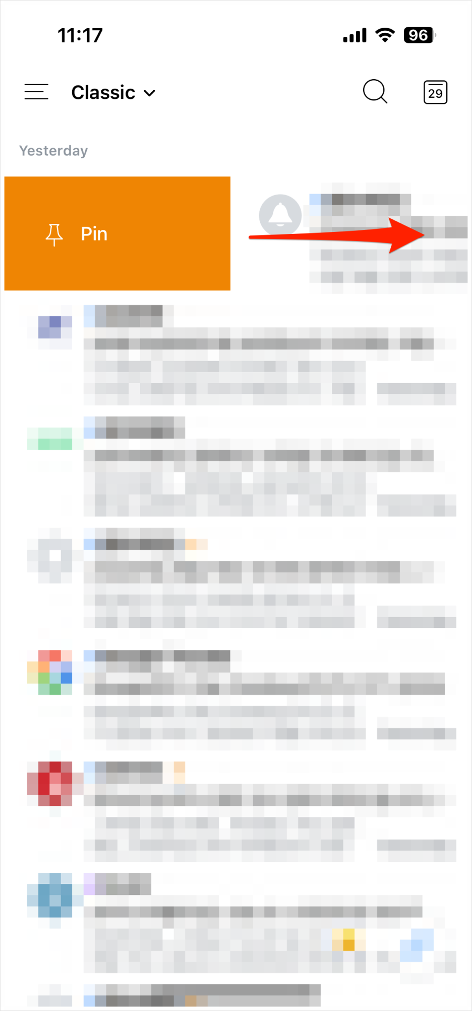 왼쪽으로 길게 스와이프하면 보관 처리 됩니다.