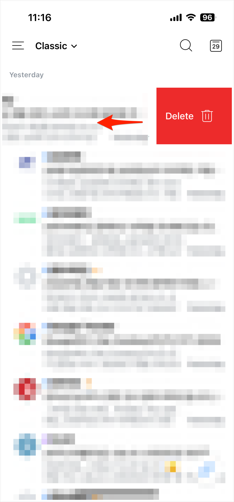 또한 왼쪽으로 짧게 스와이프하면 삭제 되며,