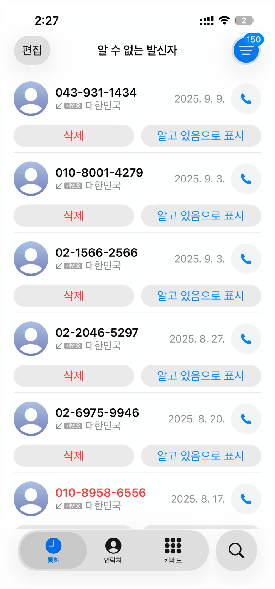 바로 최근 통화 목록을 실수로 터치해서 의도치 않게 전화가 걸리는 문제가 드디어 해결됐어요!