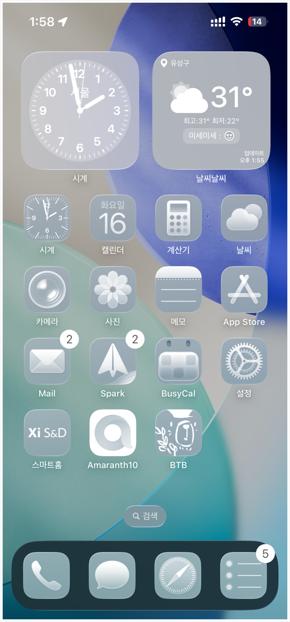 앱 아이콘도 라이트, 다크, 틴트, 클리어 모드로 다양하게 커스터마이징할 수 있어요.