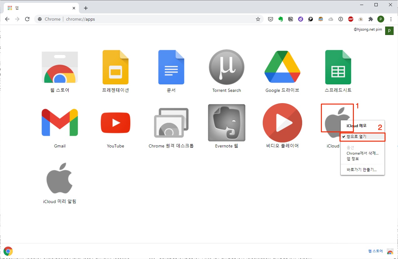 바로 크롬 브라우저를 사용해서 아이클라우드 메모를 크롬 앱으로 만드는 방법입니다.