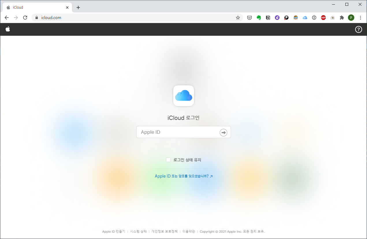 크롬 브라우저를 사용해서 아이클라우드에 접속합니다.