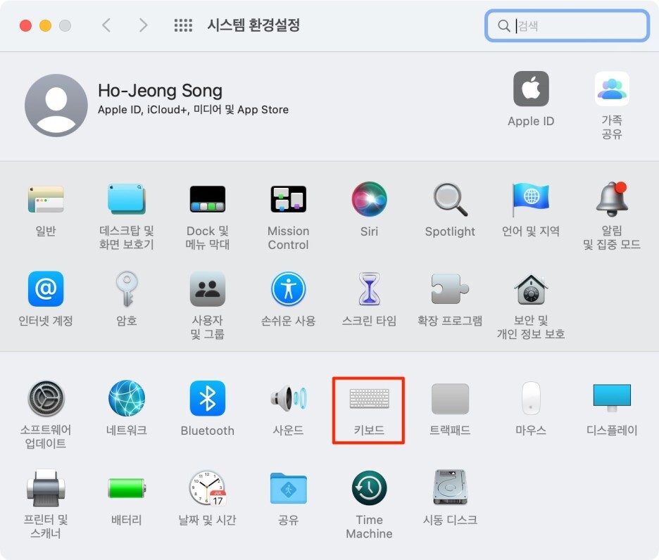 우선 [시스템 환경설정]으로 들어간 후 [키보드]를 선택합니다.