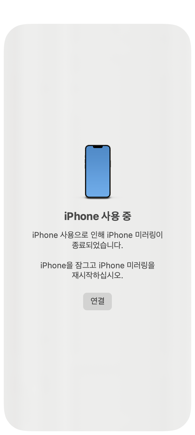 미러링 중에 아이폰을 열면 미러링이 종료 됩니다.