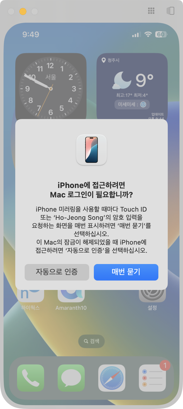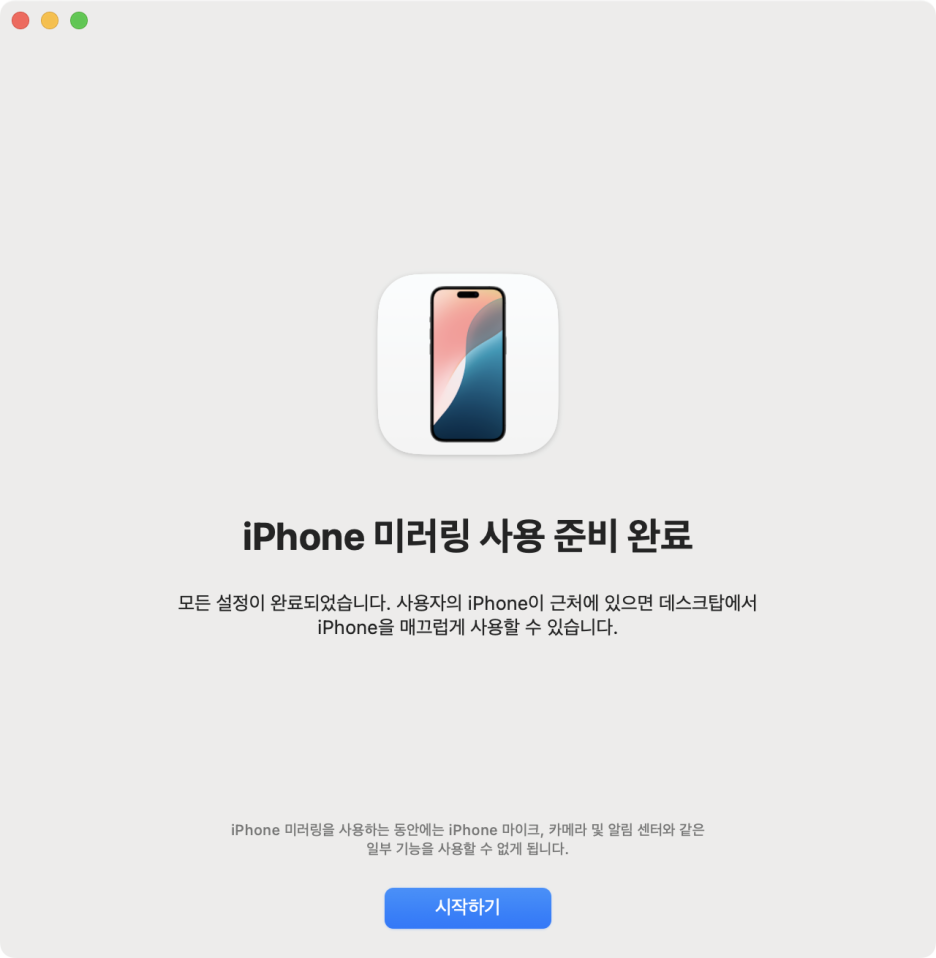 간단한 설명과 설정을 마치면 iPhone 미러링을 사용할 수 있습니다.